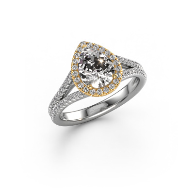 The ring shown above is called the Verla pear 2. We call this type of ring a halo ring because it has one centre gemstone and a band that is also pave set with gemstones. The 14 Carat white gold engagement ring is set with a pear 1.00 crt diamond centre stone and the band is pave set with diamonds. What makes this exclusive white gold halo ring special are the smaller sized stones embracing the centre stone. This gorgeous engagement ring is called a halo ring because the smaller gemstones give the centre stone a halo of surrounding light. In order for the smaller stones to enhance the centre stone, they have to be placed so there is no interference of light. And that's when our expert goldsmiths come in. Each individual stone is carefully set in the ring by hand. During manufacturing, light fall is constantly monitored to make sure the special halo is still visible. In the end you get a unique engagement ring, with a diamond of your choosing at its centre. You can imagine the effect of a ring of such significance when you give it to her on her special day to shine. After receiving your order, our goldsmiths will passionately start the creative process of making your engagement ring in our own studio. Because we don't have a big stockpile, these costs will not be passed on to you. Our pricing is proof of that! We offer top quality jewels at lowest price, guaranteed.Our designers and goldsmiths work together each day, creating new jewels. Perhaps you have found a nice exclusive engagement ring somewhere, which can be used to customize your unique ring. Please feel free to contact us. We will make you an offer, based on a fair price/ quality ratio, which will amaze you.To make it easier for you, we offer a 30 day return policy. Check our terms and conditions.