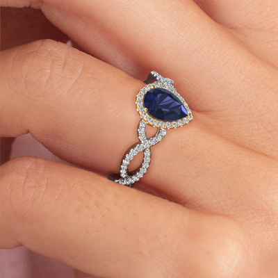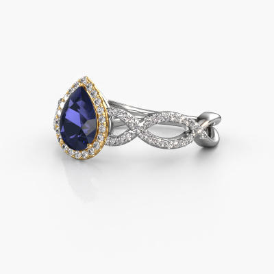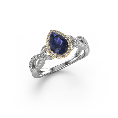 This 14 Carat white gold ring is called Dionne pear and is set with 7x5 mm sapphire. Does your girlfriend fancy exclusive jewellery? Or would you like to show her that she deserves the finest jewellery? This white gold ring is pure craftsmanship, love and passion combined with the latest techniques coming together in perfect harmony. It requires a keen eye, patience and a skilful hand to mould this ring into perfection. Just the job for our expert goldsmith! The sapphire set gemstones gives this white gold ring an extra glamorous appearance. Customize the style of the twist engagement ring to her liking with a wide variety of precious metals and gemstones which you select. That is how you create a unique ring for the most exclusive woman in your life! This jewel is created to add sparkle to your finger, each jewel is lovingly made by hand by our goldsmiths.Are you on a budget? Please feel free to contact us, so we can go discuss your options. We offer our engagement rings at guaranteed best price, because we make them to order. You won't find such a price anywhere else!Different styles of new rings are made daily by our team. Perhaps you have found a pavé solitaire engagement ring somewhere. One you would like to give to your loved one. Please feel free to share your thoughts and design with our jewel designers. We would love to turn your design into a exclusive engagement ring. You can follow the development of your ring design because we use very detailed 3D drawings. On top of that, you can order a dummy of the design. A dummy is a plastic ring, which can be shaped according your ring design. You can try it on and check if the engagement ring is up to standard. We will gladly send you a non-binding offer, based on a fair price/ quality ratio. The offer will baffle you, considering the quality of the ring and gemstones.To make it easier for you, we offer a 30 day return policy. Check our terms and conditions.