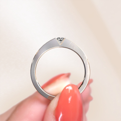 This 14 Carat white gold ring is called Arlena 2 and is set with 0.13 crt diamond. This modern white gold Engagement ring is a true masterpiece! Our expert goldsmith uses special techniques during crafting of this tension set ring to make sure the diamond of this white gold ring is fixed properly. The effect is that light fall reflects beautifully on the gemstone, which gives the ring its maximum shine and glamorous appearance. The result is a unique ring, with a trendy appearance, passionately handcrafted to perfection by our artisan goldsmith. A one-of-a-kind ring, designed for the love of your life! This jewel is unique in every way! Simply customize to your likingBy using our modern techniques, we can design and customize the finest quality jewels with the utmost care for you. Our Engagement rings are always priced 30 percent lower than other jewellers. We make Engagement rings to order so we don't have to maintain a large stock. If you have a certain budget, we are more than happy to advice you accordingly.Have you found a specific Engagement ring somewhere which you would like to give to your loved one? Please feel free to express your wishes to our jewel designers because we would be honoured to turn your design into a modern Engagement ring. You can follow the development of your ring design because we use 3D drawings. This gives you a realistic preview of how your design will look. You can also preorder a dummy. A dummy is a plastic ring, which can be shaped according your ring design. You can try it on and check if its width and size are suitable for you. We will gladly send you a non-binding offer, based on a fair price/ quality ratio. It will amaze you, considering the quality of the ring and gemstones.To make it easier for you, we offer a 30 day return policy. Check our terms and conditions.