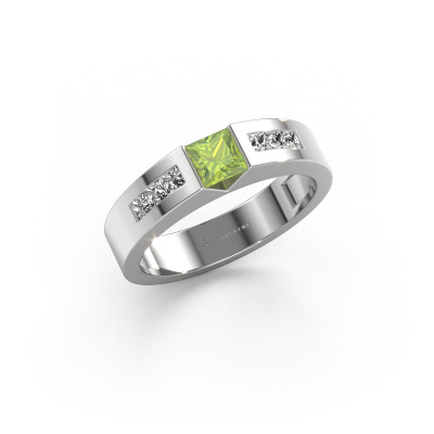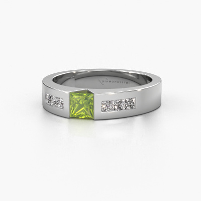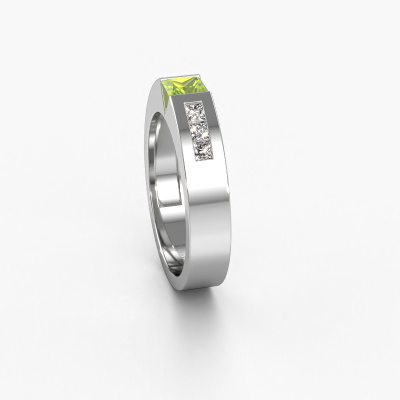 This 14 Carat white gold ring is called Arlena 2 and is set with 4 mm peridot. This modern white gold Engagement ring is a true masterpiece! Our expert goldsmith uses special techniques during crafting of this tension set ring to make sure the peridot of this white gold ring is fixed properly. The effect is that light fall reflects beautifully on the gemstone, which gives the ring its maximum shine and glamorous appearance. The result is a unique ring, with a trendy appearance, passionately handcrafted to perfection by our artisan goldsmith. A one-of-a-kind ring, designed for the love of your life! This jewel is unique in every way! Simply customize to your likingBy using our modern techniques, we can design and customize the finest quality jewels with the utmost care for you. Our Engagement rings are always priced 30 percent lower than other jewellers. We make Engagement rings to order so we don't have to maintain a large stock. If you have a certain budget, we are more than happy to advice you accordingly.Have you found a specific Engagement ring somewhere which you would like to give to your loved one? Please feel free to express your wishes to our jewel designers because we would be honoured to turn your design into a modern Engagement ring. You can follow the development of your ring design because we use 3D drawings. This gives you a realistic preview of how your design will look. You can also preorder a dummy. A dummy is a plastic ring, which can be shaped according your ring design. You can try it on and check if its width and size are suitable for you. We will gladly send you a non-binding offer, based on a fair price/ quality ratio. It will amaze you, considering the quality of the ring and gemstones.To make it easier for you, we offer a 30 day return policy. Check our terms and conditions.