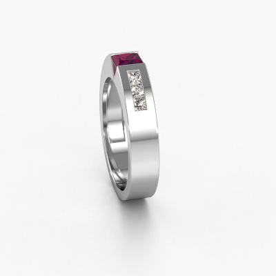 This 14 Carat white gold ring is called Arlena 2 and is set with 4 mm rhodolite. This modern white gold Engagement ring is a true masterpiece! Our expert goldsmith uses special techniques during crafting of this tension set ring to make sure the rhodolite of this white gold ring is fixed properly. The effect is that light fall reflects beautifully on the gemstone, which gives the ring its maximum shine and glamorous appearance. The result is a unique ring, with a trendy appearance, passionately handcrafted to perfection by our artisan goldsmith. A one-of-a-kind ring, designed for the love of your life! This jewel is unique in every way! Simply customize to your likingBy using our modern techniques, we can design and customize the finest quality jewels with the utmost care for you. Our Engagement rings are always priced 30 percent lower than other jewellers. We make Engagement rings to order so we don't have to maintain a large stock. If you have a certain budget, we are more than happy to advice you accordingly.Have you found a specific Engagement ring somewhere which you would like to give to your loved one? Please feel free to express your wishes to our jewel designers because we would be honoured to turn your design into a modern Engagement ring. You can follow the development of your ring design because we use 3D drawings. This gives you a realistic preview of how your design will look. You can also preorder a dummy. A dummy is a plastic ring, which can be shaped according your ring design. You can try it on and check if its width and size are suitable for you. We will gladly send you a non-binding offer, based on a fair price/ quality ratio. It will amaze you, considering the quality of the ring and gemstones.To make it easier for you, we offer a 30 day return policy. Check our terms and conditions.
