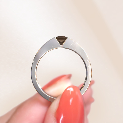 This 14 Carat white gold ring is called Arlena 2 and is set with 4 mm smokey quartz. This modern white gold Engagement ring is a true masterpiece! Our expert goldsmith uses special techniques during crafting of this tension set ring to make sure the smokey quartz of this white gold ring is fixed properly. The effect is that light fall reflects beautifully on the gemstone, which gives the ring its maximum shine and glamorous appearance. The result is a unique ring, with a trendy appearance, passionately handcrafted to perfection by our artisan goldsmith. A one-of-a-kind ring, designed for the love of your life! This jewel is unique in every way! Simply customize to your likingBy using our modern techniques, we can design and customize the finest quality jewels with the utmost care for you. Our Engagement rings are always priced 30 percent lower than other jewellers. We make Engagement rings to order so we don't have to maintain a large stock. If you have a certain budget, we are more than happy to advice you accordingly.Have you found a specific Engagement ring somewhere which you would like to give to your loved one? Please feel free to express your wishes to our jewel designers because we would be honoured to turn your design into a modern Engagement ring. You can follow the development of your ring design because we use 3D drawings. This gives you a realistic preview of how your design will look. You can also preorder a dummy. A dummy is a plastic ring, which can be shaped according your ring design. You can try it on and check if its width and size are suitable for you. We will gladly send you a non-binding offer, based on a fair price/ quality ratio. It will amaze you, considering the quality of the ring and gemstones.To make it easier for you, we offer a 30 day return policy. Check our terms and conditions.