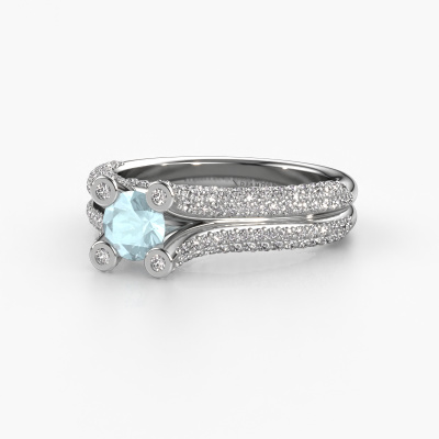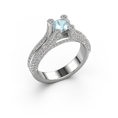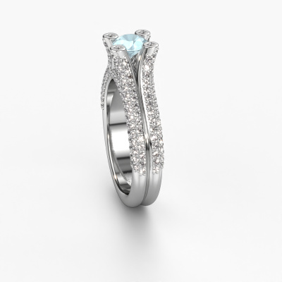 This 14 Carat white gold ring is called Stefanie 2 and is set with 5 mm aquamarine. Does your girlfriend fancy exclusive jewellery? Or would you like to show her that she deserves the finest jewellery? This white gold ring is pure craftsmanship, love and passion combined with the latest techniques coming together in perfect harmony. It requires a keen eye, patience and a skilful hand to mould this ring into perfection. Just the job for our expert goldsmith! The aquamarine set gemstones gives this white gold ring an extra glamorous appearance. Customize the style of the split band engagement ring to her liking with a wide variety of precious metals and gemstones which you select. That is how you create a unique ring for the most exclusive woman in your life! This jewel is made just for you by our master goldsmiths in our own studio.After receiving your order, our goldsmiths will passionately start the creative process of making your engagement ring in our own studio. Because we don't have a big stockpile, these costs will not be passed on to you. Our pricing is proof of that! We offer top quality jewels at lowest price, guaranteed.Different styles of new rings are made daily by our team. Perhaps you have found a pavé solitaire engagement ring somewhere. One you would like to give to your loved one. Please feel free to share your thoughts and design with our jewel designers. We would love to turn your design into a unique engagement ring. You can follow the development of your ring design because we use very detailed 3D drawings. On top of that, you can order a dummy of the design. A dummy is a plastic ring, which can be shaped according your ring design. You can try it on and check if the engagement ring is up to standard. We will gladly send you a non-binding offer, based on a fair price/ quality ratio. The offer will baffle you, considering the quality of the ring and gemstones.To make it easier for you, we offer a 30 day return policy. Check our terms and conditions.