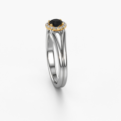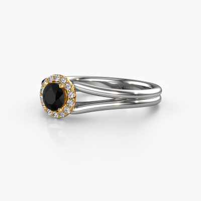 The ring shown above is called the Verla rnd 1. We call this type of ring a halo ring because it has one centre gemstone and a band that is also pave set with gemstones. The 14 Carat white gold engagement ring is set with a round 0.48 crt black diamond centre stone and the band is pave set with diamonds. What makes this classic white gold halo ring special are the smaller sized stones embracing the centre stone. This gorgeous engagement ring is called a halo ring because the smaller gemstones give the centre stone a halo of surrounding light. In order for the smaller stones to enhance the centre stone, they have to be placed so there is no interference of light. And that's when our expert goldsmiths come in. Each individual stone is carefully set in the ring by hand. During manufacturing, light fall is constantly monitored to make sure the special halo is still visible. In the end you get a unique engagement ring, with a black diamond of your choosing at its centre. You can imagine the effect of a ring of such significance when you give it to her on her special day to shine. By using a combination of the latest modern techniques, combined with ancient crafting, we can make all our engagement rings in our own studio. Each jewel is made to order. This is advantageous because we can offer you a price you won't find anywhere else.Our team adds new designs to our online collection daily. Our designers and goldsmiths work together in creating the best design. We strive to offer a diverse collection of jewels. Perhaps you have a specific jewel design in mind. One you came across somewhere. Please contact us for a free consultation. We will make you an offer, based on a fair price/ quality ratio, that will baffle you.To make it easier for you, we offer a 30 day return policy. Check our terms and conditions.