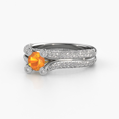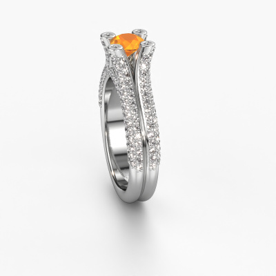 This 14 Carat white gold ring is called Stefanie 2 and is set with 5 mm citrin. Does your girlfriend fancy exclusive jewellery? Or would you like to show her that she deserves the finest jewellery? This white gold ring is pure craftsmanship, love and passion combined with the latest techniques coming together in perfect harmony. It requires a keen eye, patience and a skilful hand to mould this ring into perfection. Just the job for our expert goldsmith! The citrin set gemstones gives this white gold ring an extra glamorous appearance. Customize the style of the split band engagement ring to her liking with a wide variety of precious metals and gemstones which you select. That is how you create a unique ring for the most exclusive woman in your life! This jewel is made just for you by our master goldsmiths in our own studio.After receiving your order, our goldsmiths will passionately start the creative process of making your engagement ring in our own studio. Because we don't have a big stockpile, these costs will not be passed on to you. Our pricing is proof of that! We offer top quality jewels at lowest price, guaranteed.Different styles of new rings are made daily by our team. Perhaps you have found a pavé solitaire engagement ring somewhere. One you would like to give to your loved one. Please feel free to share your thoughts and design with our jewel designers. We would love to turn your design into a unique engagement ring. You can follow the development of your ring design because we use very detailed 3D drawings. On top of that, you can order a dummy of the design. A dummy is a plastic ring, which can be shaped according your ring design. You can try it on and check if the engagement ring is up to standard. We will gladly send you a non-binding offer, based on a fair price/ quality ratio. The offer will baffle you, considering the quality of the ring and gemstones.To make it easier for you, we offer a 30 day return policy. Check our terms and conditions.