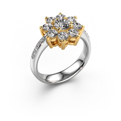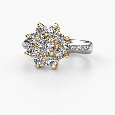 The ring shown above is called the Camille 2. We call this type of ring a cluster ring, the centre gemstone is surrounded by smaller sized stones. This 14 Carat white gold version is set with a 0.50 crt round diamond centre stone, embraced by smaller diamonds. If you look at this white gold cluster engagement ring, you might get the impression that its smaller sized stones collide with the bigger diamond, so it is shaped like a flower. Therefore this engagement ring is also known as the flower ring. Our artisan goldsmiths get the job done. Each individual stone is carefully set by hand. During manufacturing, light fall is constantly monitored to make sure the special cluster effect is still visible. In the end you get the perfect engagement ring with a radiant diamond gemstone centrepiece. You can imagine the effect of a ring of such significance when you give tot the love of your life on her special day to shine. Because we design and deliver our own rings, we can offer you a engagement ring at a price you won't find anywhere else. A ring is made to order, which helps prevent excess supplies, so we can make you a great price offer. We understand it feels risky, buying your engagement ring online, but we will gladly assist in the designing process, taking your budget into consideration.Our team adds new designs to our online collection daily. Our designers and goldsmiths work together in creating the best design. We strive to offer a diverse collection of jewels. Perhaps you have a specific jewel design in mind. One you came across somewhere. Please contact us for a free consultation. We will make you an offer, based on a fair price/ quality ratio, that will baffle you.To make it easier for you, we offer a 30 day return policy. Check our terms and conditions.