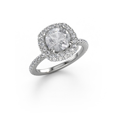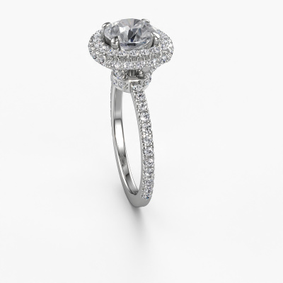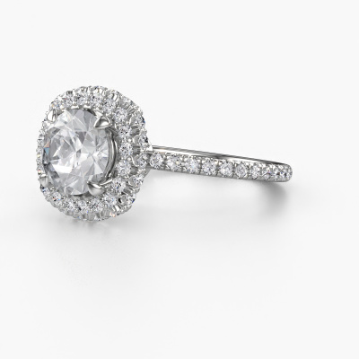 The ring shown above is called the Talitha RND. We call this type of ring a halo ring because it has one centre gemstone and a band that is also pave set with gemstones. The 14 Carat white gold engagement ring is set with a round 1.50 crt diamond centre stone and the band is pave set with lab-grown diamonds. What makes this exclusive white gold halo ring special are the smaller sized stones embracing the centre stone. This gorgeous engagement ring is called a halo ring because the smaller gemstones give the centre stone a halo of surrounding light. In order for the smaller stones to enhance the centre stone, they have to be placed so there is no interference of light. And that's when our expert goldsmiths come in. Each individual stone is carefully set in the ring by hand. During manufacturing, light fall is constantly monitored to make sure the special halo is still visible. In the end you get a unique engagement ring, with a diamond of your choosing at its centre. You can imagine the effect of a ring of such significance when you give it to her on her special day to shine. Are you on a budget? Please feel free to contact us, so we can go discuss your options. We offer our engagement rings at guaranteed best price, because we make them to order. You won't find such a price anywhere else!Our team adds new designs to our online collection daily. Our designers and goldsmiths work together in creating the best design. We strive to offer a diverse collection of jewels. Perhaps you have a specific jewel design in mind. One you came across somewhere. Please contact us for a free consultation. We will make you an offer, based on a fair price/ quality ratio, that will baffle you.To make it easier for you, we offer a 30 day return policy. Check our terms and conditions.