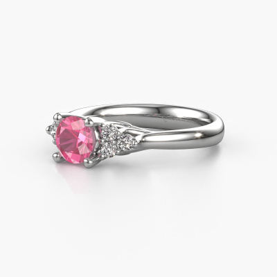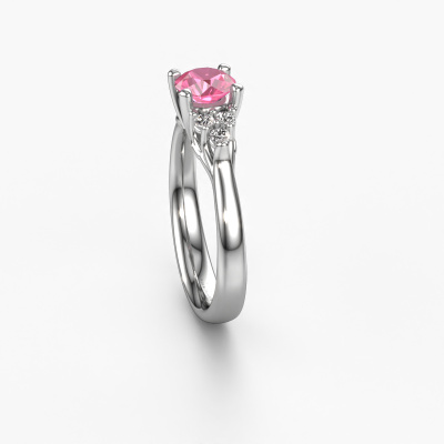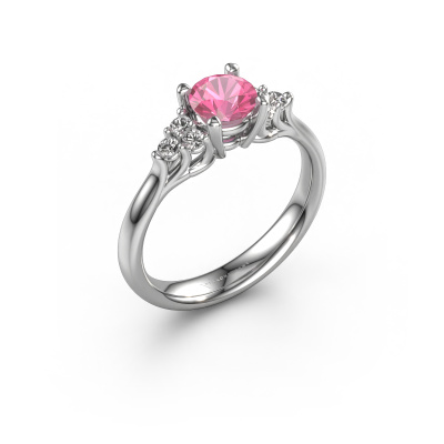 This 14 Carat white gold ring is called Monika RND and is set with 5.5 mm pink sapphire. Does your girlfriend fancy exclusive jewellery? Or would you like to show her that she deserves the finest jewellery? This white gold ring is pure craftsmanship, love and passion combined with the latest techniques coming together in perfect harmony. It requires a keen eye, patience and a skilful hand to mould this ring into perfection. Just the job for our expert goldsmith! The pink sapphire set gemstones gives this white gold ring an extra glamorous appearance. Customize the style of the ajour engagement ring to her liking with a wide variety of precious metals and gemstones which you select. That is how you create a unique ring for the most exclusive woman in your life! This jewel is made with passion and love by one of our master goldsmiths.Are you on a budget? Please feel free to contact us, so we can go discuss your options. We offer our engagement rings at guaranteed best price, because we make them to order. You won't find such a price anywhere else!Have you found a specific engagement ring somewhere which you would like to give to your loved one? Please feel free to express your wishes to our jewel designers because we would be honoured to turn your design into a classic engagement ring. You can follow the development of your ring design because we use 3D drawings. This gives you a realistic preview of how your design will look. You can also preorder a dummy. A dummy is a plastic ring, which can be shaped according your ring design. You can try it on and check if its width and size are suitable for you. We will gladly send you a non-binding offer, based on a fair price/ quality ratio. It will amaze you, considering the quality of the ring and gemstones.To make it easier for you, we offer a 30 day return policy. Check our terms and conditions.
