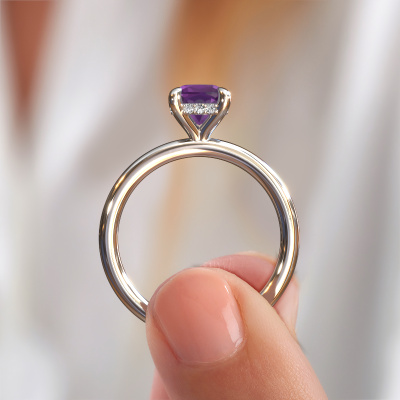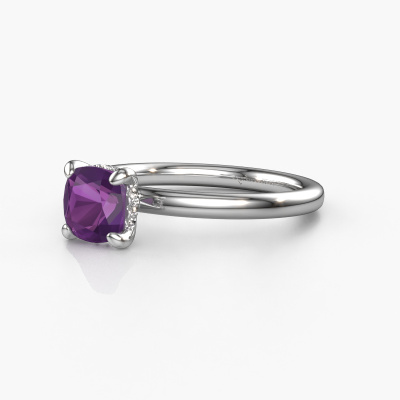 This 14 Carat white gold ring is called Simone CUS 2 and is set with amethyst. Are you in the market for a unique white gold engagement ring with a trendy appearance? Then this ring is perfect for you. Simply customize to your or her liking. This unique graceful engagement ring is set with exquisite amethyst. It has been carefully selected because your engagement ring must be adorned with nothing but the most beautiful gemstone. Our expert goldsmith will create your ring in our own studio where the amethyst will be set with great care. The ring will then be polished to perfection to give it that extra sparkle. The perfect ring for your significant other! By using a combination of the latest modern techniques, combined with ancient crafting, we can make all our engagement rings in our own studio. Each jewel is made to order. This is advantageous because we can offer you a price you won't find anywhere else.Our team adds new designs to our online collection daily. Our designers and goldsmiths work together in creating the best design. We strive to offer a diverse collection of jewels. Perhaps you have a specific jewel design in mind. One you came across somewhere. Please contact us for a free consultation. We will make you an offer, based on a fair price/ quality ratio, that will baffle you.To make it easier for you, we offer a 30 day return policy. Check our terms and conditions.