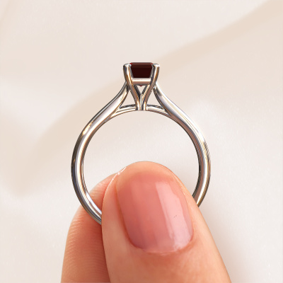This 14 Carat white gold ring is called Mignon eme 1 and is set with garnet. Are you in the market for a unique white gold engagement ring with a trendy appearance? Then this ring is perfect for you. Simply customize to your or her liking. This contemporary charming engagement ring is set with exquisite garnet. It has been carefully selected because your engagement ring must be adorned with nothing but the most beautiful gemstone. Our expert goldsmith will create your ring in our own studio where the garnet will be set with great care. The ring will then be polished to perfection to give it that extra sparkle. The perfect ring for your significant other! After receiving your order, our goldsmiths will start the creative process of making your Mignon eme 1 engagement ring. We don't keep stock. This is advantageous because these costs will not be passed on to you. Therefore, we can offer jewellery at exceptionally low prices.Our team adds new designs to our online collection daily. Our designers and goldsmiths work together in creating the best design. We strive to offer a diverse collection of jewels. Perhaps you have a specific jewel design in mind. One you came across somewhere. Please contact us for a free consultation. We will make you an offer, based on a fair price/ quality ratio, that will baffle you.To make it easier for you, we offer a 30 day return policy. Check our terms and conditions.