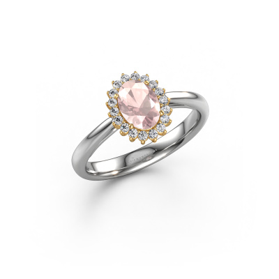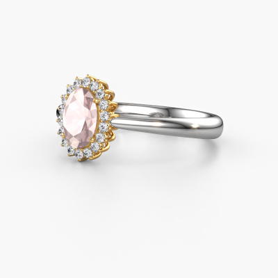 The ring shown above is called the Tilly ovl 1. We call this type of ring a cluster ring, the centre gemstone is surrounded by smaller sized stones. This 14 Carat white gold version is set with a 7x5 mm oval morganite champagne centre stone, embraced by smaller lab-grown diamonds. The classic white gold cluster engagement ring stands out because of its shape. Together, the smaller and bigger sized morganite champagne gemstones form a flower and they appear to collide into one big sparkling gem. This classic engagement ring is also known as the flower ring. Our expert Goldsmiths make sure the smaller lab-grown diamonds stones are set identically so there is no light interference in the morganite champagne but unity instead. With perfect precision and a skilful hand each morganite champagne is set in the ring. During manufacturing, it is constantly monitored to make sure light reflects flawlessly. This results in a unique engagement ring, with a radiant morganite champagne at its centre. A lovely, meaningful gift to bestow upon the love of your life. By using a combination of the latest modern techniques, combined with ancient crafting, we can make all our engagement rings in our own studio. Each jewel is made to order. This is advantageous because we can offer you a price you won't find anywhere else.Do you have a specific ring in mind? One you came across somewhere. Please feel free to tell us your wishes and we will turn your design into a unique engagement ring. You can follow the development of your ring design because we use 3D drawings. This gives you a realistic preview of your design. We will gladly send you a non-binding offer, based on a fair price/ quality ratio. It will amaze you.To make it easier for you, we offer a 30 day return policy. Check our terms and conditions.