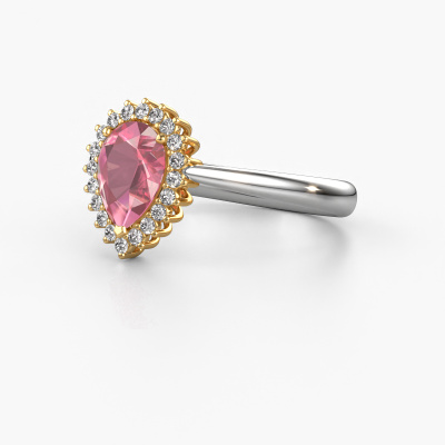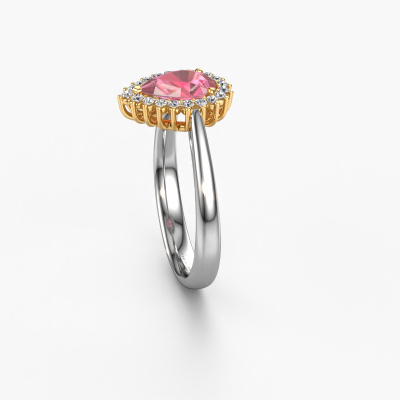 The ring shown above is called the Tilly per 1. We call this type of ring a cluster ring, the centre gemstone is surrounded by smaller sized stones. This 14 Carat white gold version is set with a 8x6 mm pear tourmaline pink centre stone, embraced by smaller diamonds. The exclusive white gold cluster engagement ring stands out because of its shape. Together, the smaller and bigger sized tourmaline pink gemstones form a flower and they appear to collide into one big sparkling gem. This exclusive engagement ring is also known as the flower ring. Our expert Goldsmiths make sure the smaller diamonds stones are set identically so there is no light interference in the tourmaline pink but unity instead. With perfect precision and a skilful hand each tourmaline pink is set in the ring. During manufacturing, it is constantly monitored to make sure light reflects flawlessly. This results in a unique engagement ring, with a radiant tourmaline pink at its centre. A lovely, meaningful gift to bestow upon the love of your life. After receiving your order, our goldsmiths will start the creative process of making your Tilly per 1 engagement ring. We don't keep stock. This is advantageous because these costs will not be passed on to you. Therefore, we can offer jewellery at exceptionally low prices.Our team adds new designs to our online collection daily. Our designers and goldsmiths work together in creating the best design. We strive to offer a diverse collection of jewels. Perhaps you have a specific jewel design in mind. One you came across somewhere. Please contact us for a free consultation. We will make you an offer, based on a fair price/ quality ratio, that will baffle you.To make it easier for you, we offer a 30 day return policy. Check our terms and conditions.