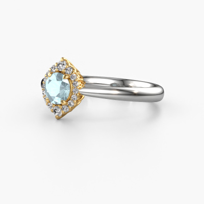 The ring shown above is called the Tora. We call this type of ring a cluster ring, the centre gemstone is surrounded by smaller sized stones. This 14 Carat white gold version is set with a 5 mm round aquamarine centre stone, embraced by smaller lab-grown diamonds. The classic white gold cluster engagement ring stands out because of its shape. Together, the smaller and bigger sized aquamarine gemstones form a flower and they appear to collide into one big sparkling gem. This classic engagement ring is also known as the flower ring. Our expert Goldsmiths make sure the smaller lab-grown diamonds stones are set identically so there is no light interference in the aquamarine but unity instead. With perfect precision and a skilful hand each aquamarine is set in the ring. During manufacturing, it is constantly monitored to make sure light reflects flawlessly. This results in a unique engagement ring, with a radiant aquamarine at its centre. A lovely, meaningful gift to bestow upon the love of your life. By using a combination of the latest modern techniques, combined with ancient crafting, we can make all our engagement rings in our own studio. Each jewel is made to order. This is advantageous because we can offer you a price you won't find anywhere else.Have you found a specific engagement ring somewhere which you would like to give to your loved one? Please feel free to express your wishes to our jewel designers because we would be honoured to turn your design into a classic engagement ring. You can follow the development of your ring design because we use 3D drawings. This gives you a realistic preview of how your design will look. You can also preorder a dummy. A dummy is a plastic ring, which can be shaped according your ring design. You can try it on and check if its width and size are suitable for you. We will gladly send you a non-binding offer, based on a fair price/ quality ratio. It will amaze you, considering the quality of the ring and gemstones.To make it easier for you, we offer a 30 day return policy. Check our terms and conditions.