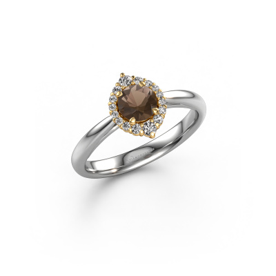 The ring shown above is called the Tora. We call this type of ring a cluster ring, the centre gemstone is surrounded by smaller sized stones. This 14 Carat white gold version is set with a 5 mm round smokey quartz centre stone, embraced by smaller lab-grown diamonds. The classic white gold cluster engagement ring stands out because of its shape. Together, the smaller and bigger sized smokey quartz gemstones form a flower and they appear to collide into one big sparkling gem. This classic engagement ring is also known as the flower ring. Our expert Goldsmiths make sure the smaller lab-grown diamonds stones are set identically so there is no light interference in the smokey quartz but unity instead. With perfect precision and a skilful hand each smokey quartz is set in the ring. During manufacturing, it is constantly monitored to make sure light reflects flawlessly. This results in a unique engagement ring, with a radiant smokey quartz at its centre. A lovely, meaningful gift to bestow upon the love of your life. By using a combination of the latest modern techniques, combined with ancient crafting, we can make all our engagement rings in our own studio. Each jewel is made to order. This is advantageous because we can offer you a price you won't find anywhere else.Have you found a specific engagement ring somewhere which you would like to give to your loved one? Please feel free to express your wishes to our jewel designers because we would be honoured to turn your design into a classic engagement ring. You can follow the development of your ring design because we use 3D drawings. This gives you a realistic preview of how your design will look. You can also preorder a dummy. A dummy is a plastic ring, which can be shaped according your ring design. You can try it on and check if its width and size are suitable for you. We will gladly send you a non-binding offer, based on a fair price/ quality ratio. It will amaze you, considering the quality of the ring and gemstones.To make it easier for you, we offer a 30 day return policy. Check our terms and conditions.