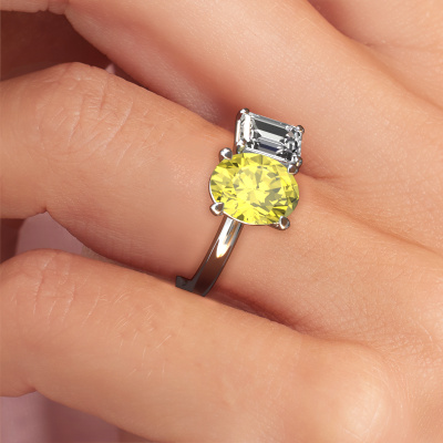 This 14 Carat white gold ring is called Toi et Moi OVL-EME and is set with 9x7 mm yellow lab grown diamond. What is it that makes your relationship unique? What is it about her that makes you want to bend down on one knee? The unique bond between the two of you is emphasized by an equally unique ring. A one of a kind charming 2 stone engagement ring made especially for her. That is why this exclusive ring fits her like a glove. Each specific detail of this charming white gold yellow lab grown diamond set engagement ring is hand-picked, crafted and polished by our expert goldsmith. The result is an exquisite ring, unique and perfectly crafted to perfection. That is what our expert Goldsmiths strive for. This jewel is made just for you, with attention to detail and design.After receiving your order, our goldsmiths will start the creative process of making your Toi et Moi OVL-EME engagement ring. We don't keep stock. This is advantageous because these costs will not be passed on to you. Therefore, we can offer jewellery at exceptionally low prices.Our team adds new designs to our online collection daily. Our designers and goldsmiths work together in creating the best design. We strive to offer a diverse collection of jewels. Perhaps you have a specific jewel design in mind. One you came across somewhere. Please contact us for a free consultation. We will make you an offer, based on a fair price/ quality ratio, that will baffle you.To make it easier for you, we offer a 30 day return policy. Check our terms and conditions.