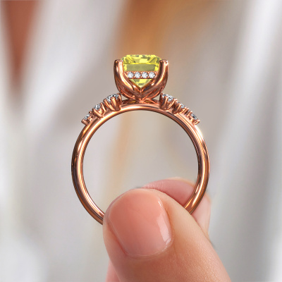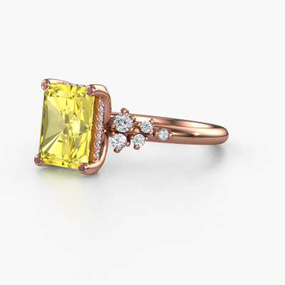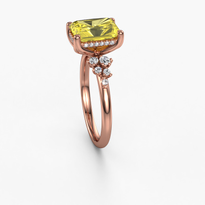 This 14 Carat rose gold ring is called Emma RAD and is set with 9x7 mm yellow lab grown diamond. What is it that makes your relationship unique? What is it about her that makes you want to bend down on one knee? The unique bond between the two of you is emphasized by an equally unique ring. A one of a kind stylish pavé solitaire engagement ring made especially for her. That is why this exclusive ring fits her like a glove. Each specific detail of this stylish rose gold yellow lab grown diamond set engagement ring is hand-picked, crafted and polished by our expert goldsmith. The result is an exquisite ring, unique and perfectly crafted to perfection. That is what our expert Goldsmiths strive for. This jewel is made by a team of passionate goldsmiths and jewel designers. This will make your crown jewel truly eye-catching.Because we design and deliver our own rings, we can offer you a engagement ring at a price you won't find anywhere else. A ring is made to order, which helps prevent excess supplies, so we can make you a great price offer. We understand it feels risky, buying your engagement ring online, but we will gladly assist in the designing process, taking your budget into consideration.Our designers and goldsmiths work together each day, creating new jewels. Perhaps you have found a nice exclusive engagement ring somewhere, which can be used to customize your unique ring. Please feel free to contact us. We will make you an offer, based on a fair price/ quality ratio, which will amaze you.To make it easier for you, we offer a 30 day return policy. Check our terms and conditions.