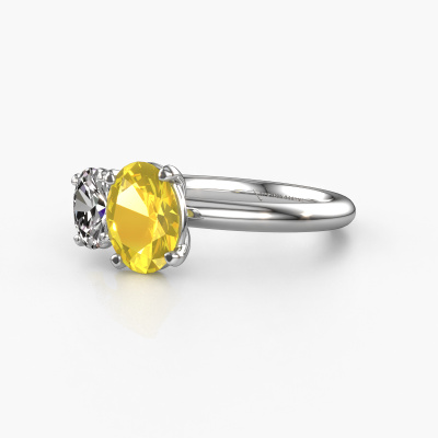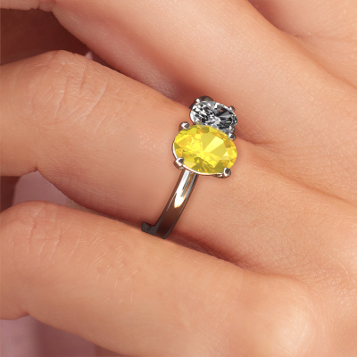 This 14 Carat white gold ring is called Toi et Moi OVL-OVL and is set with yellow sapphire. How would you describe the style of the love of your life? Does she have a unique sense of style? This stunning sublime white gold engagement ring can be custom-made to your own or her liking. Our yellow sapphire gemstones have been carefully selected because we believe your modern engagement ring must be adorned with nothing but the most beautiful gemstone. Don't you agree? This jewel is made by a team of passionate goldsmiths and jewel designers. This will make your crown jewel truly eye-catching.After receiving your order, our goldsmiths will start the creative process of making your Toi et Moi OVL-OVL engagement ring. We don't keep stock. This is advantageous because these costs will not be passed on to you. Therefore, we can offer jewellery at exceptionally low prices.Different styles of new rings are made daily by our team. Perhaps you have found a 2 stone engagement ring somewhere. One you would like to give to your loved one. Please feel free to share your thoughts and design with our jewel designers. We would love to turn your design into a modern engagement ring. You can follow the development of your ring design because we use very detailed 3D drawings. On top of that, you can order a dummy of the design. A dummy is a plastic ring, which can be shaped according your ring design. You can try it on and check if the engagement ring is up to standard. We will gladly send you a non-binding offer, based on a fair price/ quality ratio. The offer will baffle you, considering the quality of the ring and gemstones.To make it easier for you, we offer a 30 day return policy. Check our terms and conditions.