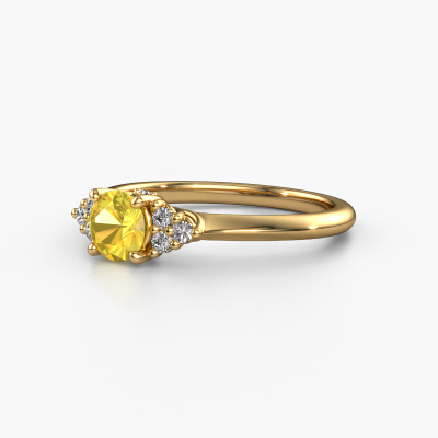 This 14 Carat gold ring is called Felipa RND and is set with 5 mm yellow sapphire. What is it that makes your relationship unique? What is it about her that makes you want to bend down on one knee? The unique bond between the two of you is emphasized by an equally unique ring. A one of a kind ajour 3-stone engagement ring made especially for her. That is why this fantasy ring fits her like a glove. Each specific detail of this ajour gold yellow sapphire set engagement ring is hand-picked, crafted and polished by our expert goldsmith. The result is an exquisite ring, unique and perfectly crafted to perfection. That is what our expert Goldsmiths strive for. This jewel is made just for you by our master goldsmiths in our own studio.After receiving your order, our goldsmiths will passionately start the creative process of making your engagement ring in our own studio. Because we don't have a big stockpile, these costs will not be passed on to you. Our pricing is proof of that! We offer top quality jewels at lowest price, guaranteed.Have you found a specific engagement ring somewhere which you would like to give to your loved one? Please feel free to express your wishes to our jewel designers because we would be honoured to turn your design into a fantasy engagement ring. You can follow the development of your ring design because we use 3D drawings. This gives you a realistic preview of how your design will look. You can also preorder a dummy. A dummy is a plastic ring, which can be shaped according your ring design. You can try it on and check if its width and size are suitable for you. We will gladly send you a non-binding offer, based on a fair price/ quality ratio. It will amaze you, considering the quality of the ring and gemstones.To make it easier for you, we offer a 30 day return policy. Check our terms and conditions.