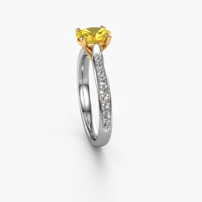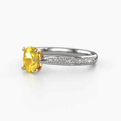 The ring shown above is called the Mignon ovl 2, we call this a solitaire ring because it contains a single gemstone. The engagement ring is made in 14 Carat white gold and has a oval yellow sapphire of 7x5 mm. The cool thing about our configurator is that you can compile your own piece of jewellery, into a completely personalized one. This solitaire ring is crafted in the precious metals white gold with gold, but of course you are free to pick your own colours. Each piece of jewellery is made with passion and love by one of our master goldsmiths.The solitaire ring is a special type of engagement ring. Its open prong setting allows light to strike the gemstone from various angles. This chic engagement ring is a stunning eye-catcher because of the high positioning of the gemstone. In order for you to commemorate your proposal with a unique ring, we carefully adorn this solitaire ring by hand. The love of your life deserves nothing but the best. After receiving your order, our goldsmiths will passionately start the creative process of making your engagement ring in our own studio. Because we don't have a big stockpile, these costs will not be passed on to you. Our pricing is proof of that! We offer top quality jewels at lowest price, guaranteed.Our team adds new designs to our online collection daily. Our designers and goldsmiths work together in creating the best design. We strive to offer a diverse collection of jewels. Perhaps you have a specific jewel design in mind. One you came across somewhere. Please contact us for a free consultation. We will make you an offer, based on a fair price/ quality ratio, that will baffle you.To make it easier for you, we offer a 30 day return policy. Check our terms and conditions.