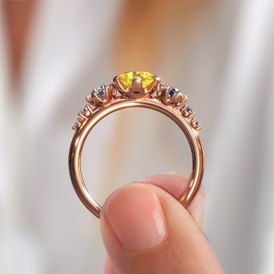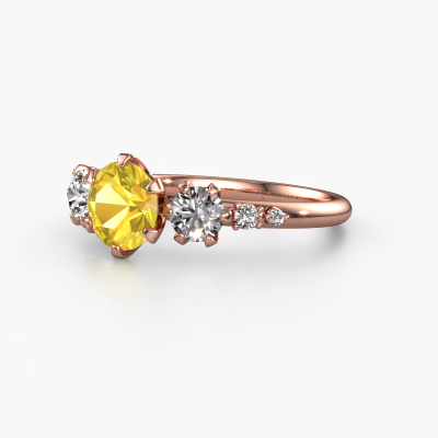 This 14 Carat rose gold ring is called Aniek RND and is set with yellow sapphire. How would you describe the style of the love of your life? Does she have a unique sense of style? This stunning graceful rose gold engagement ring can be custom-made to your own or her liking. Our yellow sapphire gemstones have been carefully selected because we believe your fantasy engagement ring must be adorned with nothing but the most beautiful gemstone. Don't you agree? This jewel is made just for you by our master goldsmiths in our own studio.Are you on a budget? Please feel free to contact us, so we can go discuss your options. We offer our engagement rings at guaranteed best price, because we make them to order. You won't find such a price anywhere else!Have you found a specific engagement ring somewhere which you would like to give to your loved one? Please feel free to express your wishes to our jewel designers because we would be honoured to turn your design into a fantasy engagement ring. You can follow the development of your ring design because we use 3D drawings. This gives you a realistic preview of how your design will look. You can also preorder a dummy. A dummy is a plastic ring, which can be shaped according your ring design. You can try it on and check if its width and size are suitable for you. We will gladly send you a non-binding offer, based on a fair price/ quality ratio. It will amaze you, considering the quality of the ring and gemstones.To make it easier for you, we offer a 30 day return policy. Check our terms and conditions.