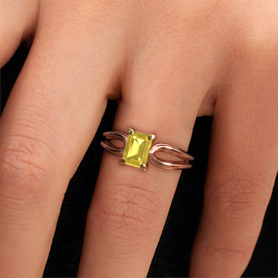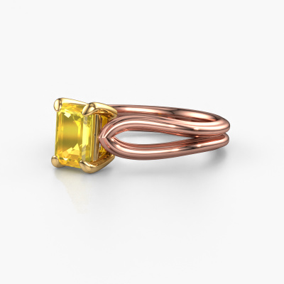 The ring shown above is called the Antonia eme 1, we call this a solitaire ring because it contains a single gemstone. The engagement ring is made in 14 Carat rose gold and has a emerald cut yellow sapphire of 7x5 mm. The cool thing about our configurator is that you can compile your own piece of jewellery, into a completely personalized one. This solitaire ring is crafted in the precious metals rose gold with gold, but of course you are free to pick your own colours. Each piece of jewellery is created to add sparkle to your finger, each jewel is lovingly made by hand by our goldsmiths.The solitaire ring is a special type of engagement ring. Its open prong setting allows light to strike the gemstone from various angles. This fantasy engagement ring is a stunning eye-catcher because of the high positioning of the gemstone. In order for you to commemorate your proposal with a unique ring, we carefully adorn this solitaire ring by hand. The love of your life deserves nothing but the best. Because we design and deliver our own rings, we can offer you a engagement ring at a price you won't find anywhere else. A ring is made to order, which helps prevent excess supplies, so we can make you a great price offer. We understand it feels risky, buying your engagement ring online, but we will gladly assist in the designing process, taking your budget into consideration.Our designers and goldsmiths work together each day, creating new jewels. Perhaps you have found a nice fantasy engagement ring somewhere, which can be used to customize your unique ring. Please feel free to contact us. We will make you an offer, based on a fair price/ quality ratio, which will amaze you.To make it easier for you, we offer a 30 day return policy. Check our terms and conditions.