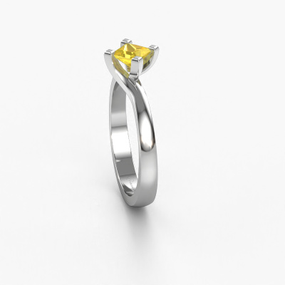 In your eyes, no one else compares to her. She is one in a million, unlike anyone else and pure? These qualities are emphasized perfectly by our modern white gold solitaire yellow sapphire ring. This yellow sapphire is carefully selected by our keen artisan goldsmiths. It equals the unique qualities of the love of your life. There is no better way to memorialize your proposal than this symbol of true love. The ring shown above is called the Dewi Square, we call this a solitaire ring because it contains a single gemstone. The Engagement ring is made in 14 Carat white gold and has a princess yellow sapphire of 4 mm. Each piece of jewellery is made just for you by our master goldsmiths in our own studio.By using a combination of the latest modern techniques, combined with ancient crafting, we can make all our Engagement rings in our own studio. Each jewel is made to order. This is advantageous because we can offer you a price you won't find anywhere else.Our designers and goldsmiths work together each day, creating new jewels. Perhaps you have found a nice modern Engagement ring somewhere, which can be used to customize your unique ring. Please feel free to contact us. We will make you an offer, based on a fair price/ quality ratio, which will amaze you.To make it easier for you, we offer a 30 day return policy. Check our terms and conditions.