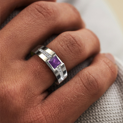 Are you looking for a modern platinum pinky ring that is slightly different? Then our square platinum amethyst set Simon pinky ring is the perfect ring for you! This ring, as shown here, is made of platinum but feel free to customize to your liking. Show them what you are all about with this platinum amethysten Simon pinky ring, a ring for ambitious men. How do you like this modern platinum men's ring? Simply customize this Simon men's ring, using our online tool. Subsequently, your personal luxury Simon men's ring will be made by hand by our goldsmiths. Precious metals and gemstones can be customized to your liking. Do you have specific preferences which are unavailable in our online tool? Please feel free to contact us. We will customize your personal modern men's ring to your liking.Our talented designers add new designs to our online collection daily. Together they create a diverse collection of the finest jewellery. If you prefer to make a ring according your own design, please feel free to request a quote. We will make you an amazing offer, based on quality and price.By using a combination of the latest modern techniques, combined with ancient crafting, we can make all our rings in our own studio. Each jewel is made to order. This is advantageous because we can offer you a price you won't find anywhere else.To make it easier for you, we offer a 30 day return policy. Check our terms and conditions.
