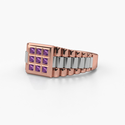 Everyone knows the design of this well-known watch brand. With two colours of rose gold links, this 2 Colours 14 Carat rose gold Chavez men's ring, is perfectly suited for trendy, successful men. A man who wants to dress to impress with a striking men's ring with 2 mm amethyst. Show them what you are made of!Customize your own diamonds Chavez men's ring, which will then be created by our goldsmiths with great passion. Do you prefer a different option than is shown here in the rose gold Chavez men's ring? Then our online tools offers various options. Feel free to ask us for help if you are unable to succeed. We are happy to answer your questions!Our talented designers add new designs to our online collection daily. Together they create a diverse collection of the finest jewellery. If you prefer to make a ring according your own design, please feel free to request a quote. We will make you an amazing offer, based on quality and price.Because we design and deliver our own rings, we can offer you a ring at a price you won't find anywhere else. A ring is made to order, which helps prevent excess supplies, so we can make you a great price offer. We understand it feels risky, buying your ring online, but we will gladly assist in the designing process, taking your budget into consideration.To make it easier for you, we offer a 30 day return policy. Check our terms and conditions.