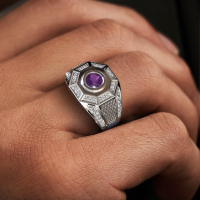 Are you looking for a modern platinum men's ring that is slightly different? Then our heavy platinum amethyst set Enzo men's ring is the perfect ring for you! This ring, as shown here, is made of platinum but feel free to customize to your liking. Show them what you are all about with this platinum amethysten Enzo men's ring, a ring for ambitious men. Customize your own special Enzo men's ring, which will then be created by our goldsmiths with great passion. Do you prefer a different option than is shown here in the platinum Enzo men's ring? Then our online tools offers various options. Feel free to ask us for help if you are unable to succeed. We are happy to answer your questions!Our team of talented, passionate designers add new ring designs to our online collection daily. Our objective in doing so, is to be able to offer you a wide variety of jewels. Please feel free to request a quote if you have specific wishes for your ring. We guarantee to make you an offer you can't refuse.After receiving your order, our goldsmiths will start the creative process of making your Enzo ring. We don't keep stock. This is advantageous because these costs will not be passed on to you. Therefore, we can offer jewellery at exceptionally low prices.To make it easier for you, we offer a 30 day return policy. Check our terms and conditions.
