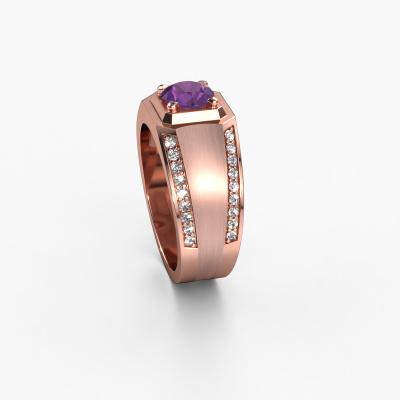 Are you looking for a modern rose gold men's ring that is slightly different? Then our rectangular rose gold amethyst set Maarten men's ring is the perfect ring for you! This ring, as shown here, is made of rose gold but feel free to customize to your liking. Show them what you are all about with this rose gold amethysten Maarten men's ring, a ring for ambitious men. Our goldsmiths passionately create your customized men's ring to your liking with the utmost care. The rose gold men's ring, as shown here, can be customized using our online tool. Feel free to ask our jewel designers for assistance if you want changes made which are unavailable in our online tool. We are happy to answer your questions.New jewellery designs are added to our online collection daily. Our team of passionate designers strive to create extraordinary and diverse designs. Have you seen a ring you like? Please feel free to contact us. Based on a good price/ quality ratio, we will make you an offer you can't refuse!After receiving your order, our goldsmiths will passionately start the creative process of making your ring in our own studio. Because we don't have a big stockpile, these costs will not be passed on to you. Our pricing is proof of that! We offer top quality jewels at lowest price, guaranteed.To make it easier for you, we offer a 30 day return policy. Check our terms and conditions.
