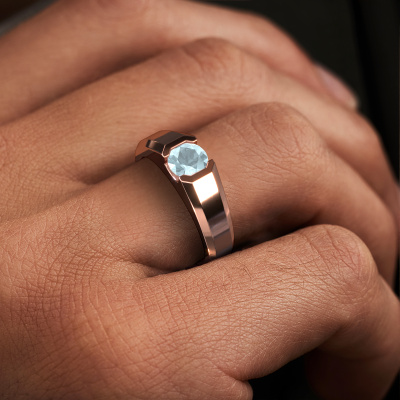 Are you looking for a modern rose gold men's ring that is slightly different? Then our rectangular rose gold aquamarine set Indigo men's ring is the perfect ring for you! This ring, as shown here, is made of rose gold but feel free to customize to your liking. Show them what you are all about with this rose gold aquamarine Indigo men's ring, a ring for ambitious men. How do you like this modern rose gold men's ring? Simply customize this Indigo men's ring, using our online tool. Subsequently, your personal best prices Indigo men's ring will be made by hand by our goldsmiths. Precious metals and gemstones can be customized to your liking. Do you have specific preferences which are unavailable in our online tool? Please feel free to contact us. We will customize your personal modern men's ring to your liking.Our team of talented, passionate designers add new ring designs to our online collection daily. Our objective in doing so, is to be able to offer you a wide variety of jewels. Please feel free to request a quote if you have specific wishes for your ring. We guarantee to make you an offer you can't refuse.By using a combination of the latest modern techniques, combined with ancient crafting, we can make all our rings in our own studio. Each jewel is made to order. This is advantageous because we can offer you a price you won't find anywhere else.To make it easier for you, we offer a 30 day return policy. Check our terms and conditions.