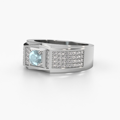 Are you looking for a modern white gold men's ring that is slightly different? Then our flat white gold aquamarine set Marcel men's ring is the perfect ring for you! This ring, as shown here, is made of white gold but feel free to customize to your liking. Show them what you are all about with this white gold aquamarine Marcel men's ring, a ring for ambitious men. Our goldsmiths passionately create your customized men's ring to your liking with the utmost care. The white gold men's ring, as shown here, can be customized using our online tool. Feel free to ask our jewel designers for assistance if you want changes made which are unavailable in our online tool. We are happy to answer your questions.