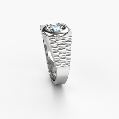 Everyone knows the design of this well-known watch brand. With two colours of platinum links, this solid platinum Edward men's ring, is perfectly suited for trendy, successful men. A man who wants to dress to impress with a striking men's ring with 4.7 mm aquamarine. Show them what you are made of!How do you like this exclusive platinum men's ring? Simply customize this Edward men's ring, using our online tool. Subsequently, your personal daring Edward men's ring will be made by hand by our goldsmiths. Precious metals and gemstones can be customized to your liking. Do you have specific preferences which are unavailable in our online tool? Please feel free to contact us. We will customize your personal exclusive men's ring to your liking.Our talented designers add new designs to our online collection daily. Together they create a diverse collection of the finest jewellery. If you prefer to make a ring according your own design, please feel free to request a quote. We will make you an amazing offer, based on quality and price.Because we design and deliver our own rings, we can offer you a ring at a price you won't find anywhere else. A ring is made to order, which helps prevent excess supplies, so we can make you a great price offer. We understand it feels risky, buying your ring online, but we will gladly assist in the designing process, taking your budget into consideration.To make it easier for you, we offer a 30 day return policy. Check our terms and conditions.