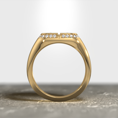 Dress to impress with this square Ravi men's ring, because with the right ring you make a strong personal statement. This Ravi special men's ring is shown in 14 Carat gold. If this doesn't suit your style, feel free to customize the precious metal to your liking. After all, you want a men's ring that matches your style. A ring that truly suits you. One saying: This is who I am!Customize your own special Ravi men's ring, which will then be created by our goldsmiths with great passion. Do you prefer a different option than is shown here in the gold Ravi men's ring? Then our online tools offers various options. Feel free to ask us for help if you are unable to succeed. We are happy to answer your questions!Our team of talented, passionate designers add new ring designs to our online collection daily. Our objective in doing so, is to be able to offer you a wide variety of jewels. Please feel free to request a quote if you have specific wishes for your ring. We guarantee to make you an offer you can't refuse.By using our modern techniques, we can design and customize the finest quality jewels with the utmost care for you. Our rings are always priced 30 percent lower than other jewellers. We make rings to order, so we don't have to maintain a large stock. If you have a certain budget, we are more than happy to advice you accordingly.To make it easier for you, we offer a 30 day return policy. Check our terms and conditions.