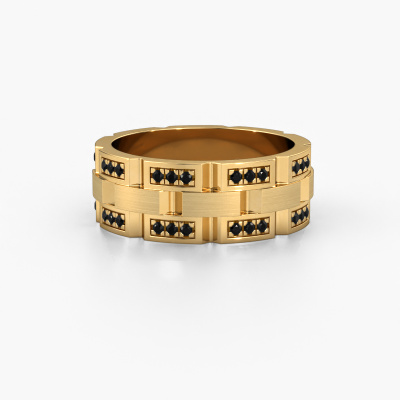 Are you looking for a traditional gold men's ring that is slightly different? Then our solid gold black diamond set Ricardo 4 men's ring is the perfect ring for you! This ring, as shown here, is made of gold but feel free to customize to your liking. Show them what you are all about with this gold black diamonds Ricardo 4 men's ring, a ring for ambitious men. The edgy Ricardo 4 men's ring, as shown here, can be customized to your liking. Our online tool offers many different options but please feel free to contact us if you want changes made to your Ricardo 4 men's ring, which are unavailable in our online tool.Our talented designers add new designs to our online collection daily. Together they create a diverse collection of the finest jewellery. If you prefer to make a ring according your own design, please feel free to request a quote. We will make you an amazing offer, based on quality and price.After receiving your order, our goldsmiths will passionately start the creative process of making your ring in our own studio. Because we don't have a big stockpile, these costs will not be passed on to you. Our pricing is proof of that! We offer top quality jewels at lowest price, guaranteed.To make it easier for you, we offer a 30 day return policy. Check our terms and conditions.