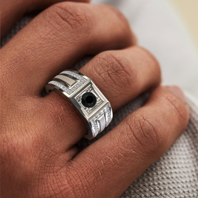 Are you looking for a unique platinum men's ring that is slightly different? Then our rectangular platinum black diamond set Lando men's ring is the perfect ring for you! This ring, as shown here, is made of platinum but feel free to customize to your liking. Show them what you are all about with this platinum black diamonds Lando men's ring, a ring for ambitious men. How do you like this unique platinum men's ring? Simply customize this Lando men's ring, using our online tool. Subsequently, your personal royal Lando men's ring will be made by hand by our goldsmiths. Precious metals and gemstones can be customized to your liking. Do you have specific preferences which are unavailable in our online tool? Please feel free to contact us. We will customize your personal unique men's ring to your liking.New jewellery designs are added to our online collection daily. Our team of passionate designers strive to create extraordinary and diverse designs. Have you seen a ring you like? Please feel free to contact us. Based on a good price/ quality ratio, we will make you an offer you can't refuse!Because we design and deliver our own rings, we can offer you a ring at a price you won't find anywhere else. A ring is made to order, which helps prevent excess supplies, so we can make you a great price offer. We understand it feels risky, buying your ring online, but we will gladly assist in the designing process, taking your budget into consideration.To make it easier for you, we offer a 30 day return policy. Check our terms and conditions.