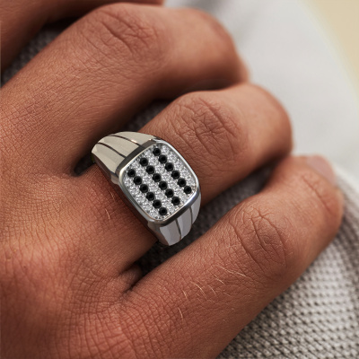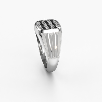 Are you looking for a exclusive platinum pinky ring that is slightly different? Then our square platinum black diamond set Robbert pinky ring is the perfect ring for you! This ring, as shown here, is made of platinum but feel free to customize to your liking. Show them what you are all about with this platinum black diamonds Robbert pinky ring, a ring for ambitious men. How do you like this exclusive platinum men's ring? Simply customize this Robbert men's ring, using our online tool. Subsequently, your personal elegant Robbert men's ring will be made by hand by our goldsmiths. Precious metals and gemstones can be customized to your liking. Do you have specific preferences which are unavailable in our online tool? Please feel free to contact us. We will customize your personal exclusive men's ring to your liking.