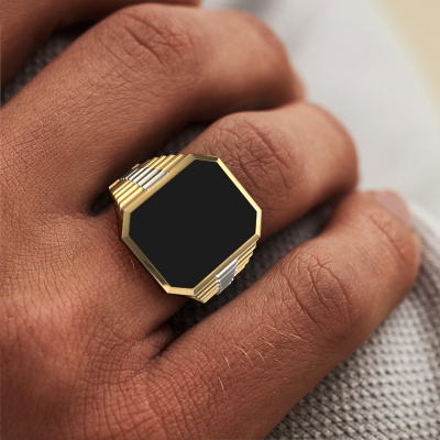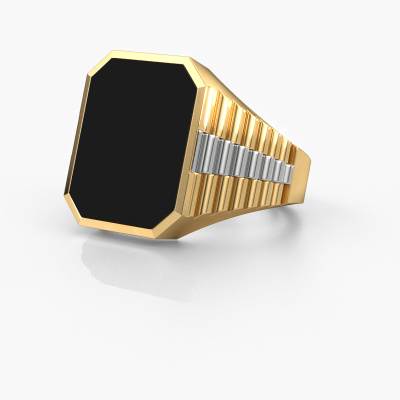 Everyone knows the design of this well-known watch brand. With two colours of gold links, this 2 Colours 14 Carat gold Brent 4 signet ring, is perfectly suited for trendy, successful men. A man who wants to dress to impress with a striking signet ring with 16x13 mm black enamel. Show them what you are made of!Customize your own luxury Brent 4 signet ring, which will then be created by our goldsmiths with great passion. Do you prefer a different option than is shown here in the gold Brent 4 signet ring? Then our online tools offers various options. Feel free to ask us for help if you are unable to succeed. We are happy to answer your questions!Our team of talented, passionate designers add new ring designs to our online collection daily. Our objective in doing so, is to be able to offer you a wide variety of jewels. Please feel free to request a quote if you have specific wishes for your ring. We guarantee to make you an offer you can't refuse.Are you on a budget? Please feel free to contact us, so we can go discuss your options. We offer our rings at guaranteed best price, because we make them to order. You won't find such a price anywhere else!To make it easier for you, we offer a 30 day return policy. Check our terms and conditions.