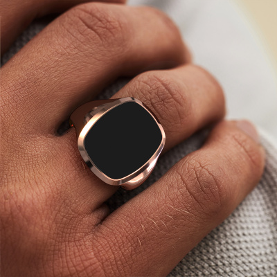 The flat Benjamin 4 signet ring with rectangle antique black enamel stone top, as shown above, is filled with tradition. Customary, the signet ring was passed down from father to son. Start your own tradition with this flat rose gold signet ring. We are also more than happy to engrave your ring with a monogram or family crest. Please check our database for further inquiries and options. You can find the departments of our education centre at the bottom of this page. Start a new tradition with the modern rose gold Benjamin 4 signet ring. How do you like this modern rose gold signet ring? Simply customize this Benjamin 4 signet ring, using our online tool. Subsequently, your personal royal Benjamin 4 signet ring will be made by hand by our goldsmiths. Precious metals and gemstones can be customized to your liking. Do you have specific preferences which are unavailable in our online tool? Please feel free to contact us. We will customize your personal modern signet ring to your liking.Our team of talented, passionate designers add new ring designs to our online collection daily. Our objective in doing so, is to be able to offer you a wide variety of jewels. Please feel free to request a quote if you have specific wishes for your ring. We guarantee to make you an offer you can't refuse.After receiving your order, our goldsmiths will passionately start the creative process of making your ring in our own studio. Because we don't have a big stockpile, these costs will not be passed on to you. Our pricing is proof of that! We offer top quality jewels at lowest price, guaranteed.To make it easier for you, we offer a 30 day return policy. Check our terms and conditions.