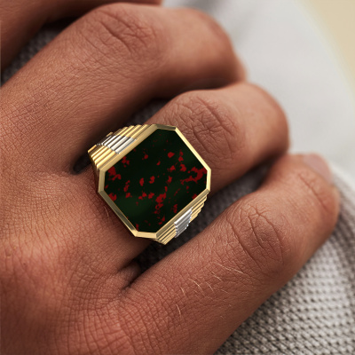 Everyone knows the design of this well-known watch brand. With two colours of gold links, this 2 Colours 14 Carat gold Brent 4 signet ring, is perfectly suited for trendy, successful men. A man who wants to dress to impress with a striking signet ring with 16x13 mm bloodstone. Show them what you are made of!Customize your own luxury Brent 4 signet ring, which will then be created by our goldsmiths with great passion. Do you prefer a different option than is shown here in the gold Brent 4 signet ring? Then our online tools offers various options. Feel free to ask us for help if you are unable to succeed. We are happy to answer your questions!Our team of talented, passionate designers add new ring designs to our online collection daily. Our objective in doing so, is to be able to offer you a wide variety of jewels. Please feel free to request a quote if you have specific wishes for your ring. We guarantee to make you an offer you can't refuse.Are you on a budget? Please feel free to contact us, so we can go discuss your options. We offer our rings at guaranteed best price, because we make them to order. You won't find such a price anywhere else!To make it easier for you, we offer a 30 day return policy. Check our terms and conditions.