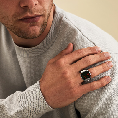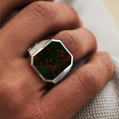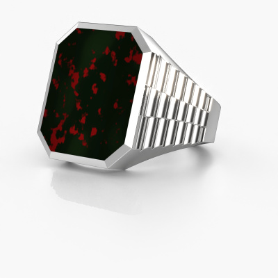 Everyone knows the design of this well-known watch brand. With two colours of platinum links, this heavy platinum Brent 5 signet ring, is perfectly suited for trendy, successful men. A man who wants to dress to impress with a striking signet ring with 18x15 mm bloodstone. Show them what you are made of!The cool Brent 5 signet ring, as shown here, can be customized to your liking. Our online tool offers many different options but please feel free to contact us if you want changes made to your Brent 5 signet ring, which are unavailable in our online tool.Our team of talented, passionate designers add new ring designs to our online collection daily. Our objective in doing so, is to be able to offer you a wide variety of jewels. Please feel free to request a quote if you have specific wishes for your ring. We guarantee to make you an offer you can't refuse.By using our modern techniques, we can design and customize the finest quality jewels with the utmost care for you. Our rings are always priced 30 percent lower than other jewellers. We make rings to order, so we don't have to maintain a large stock. If you have a certain budget, we are more than happy to advice you accordingly.To make it easier for you, we offer a 30 day return policy. Check our terms and conditions.