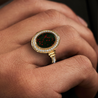 The oval Servie 2 signet ring with oval shape bloodstone stone top, as shown above, is filled with tradition. Customary, the signet ring was passed down from father to son. Start your own tradition with this oval gold signet ring. We are also more than happy to engrave your ring with a monogram or family crest. Please check our database for further inquiries and options. You can find the departments of our education centre at the bottom of this page. Start a new tradition with the unique gold Servie 2 signet ring. The best part of this best prices [typehr2] is that you can customize it to your own liking. Your style, your choice, your [typehr2]. On top of that, your unique gold [typehr2] will be made by hand with eco-friendly materials! Please feel free to easily customize the ring, using our online tool. Of course, you can always contact us. We will gladly help you compiling your unique [typehr2]. Is there a design you like, but you would like to customize it with a gemstone we do not offer on our website, then please contact us. We're happy to tell you about the possibilities.New jewellery designs are added to our online collection daily. Our team of passionate designers strive to create extraordinary and diverse designs. Have you seen a ring you like? Please feel free to contact us. Based on a good price/ quality ratio, we will make you an offer you can't refuse!Because we design and deliver our own rings, we can offer you a ring at a price you won't find anywhere else. A ring is made to order, which helps prevent excess supplies, so we can make you a great price offer. We understand it feels risky, buying your ring online, but we will gladly assist in the designing process, taking your budget into consideration.To make it easier for you, we offer a 30 day return policy. Check our terms and conditions.