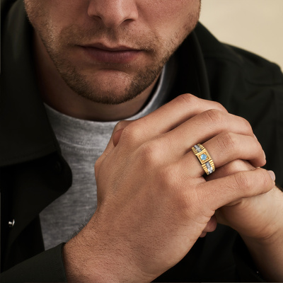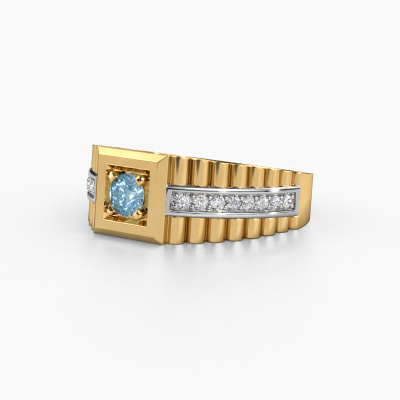 Everyone knows the design of this well-known watch brand. With two colours of gold links, this wide 14 Carat gold Maikel men's ring, is perfectly suited for trendy, successful men. A man who wants to dress to impress with a striking men's ring with 4.2 mm blue lab grown diamond. Show them what you are made of!
