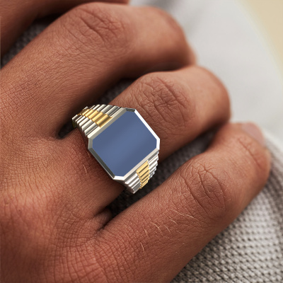 Everyone knows the design of this well-known watch brand. With two colours of white gold links, this flat 14 Carat white gold Brent 2 signet ring, is perfectly suited for trendy, successful men. A man who wants to dress to impress with a striking signet ring with 12x10 mm blue sardonyx. Show them what you are made of!Customize your own special Brent 2 signet ring, which will then be created by our goldsmiths with great passion. Do you prefer a different option than is shown here in the white gold Brent 2 signet ring? Then our online tools offers various options. Feel free to ask us for help if you are unable to succeed. We are happy to answer your questions!