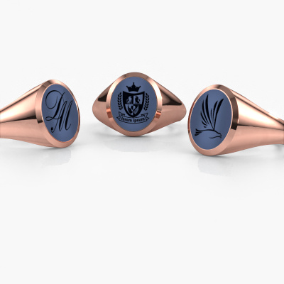 The solid Herman 3 signet ring with oval shape blue sardonyx stone top, as shown above, is filled with tradition. Customary, the signet ring was passed down from father to son. Start your own tradition with this solid rose gold signet ring. We are also more than happy to engrave your ring with a monogram or family crest. Please check our database for further inquiries and options. You can find the departments of our education centre at the bottom of this page. Start a new tradition with the classic rose gold Herman 3 signet ring. As soon as you finished designing your Herman 3 signet ring with our online tool, our goldsmiths will start their creative process of making your ring. This will be done with passion and care, according ancient crafting. On top of that, our jewels are made of eco-friendly materials. Simply customize online with our online tool, if you want any changes made. If you want specific changes made to your Herman 3 signet ring, that are unavailable in our online tool, please feel free to contact our expert designers.Our team of talented, passionate designers add new ring designs to our online collection daily. Our objective in doing so, is to be able to offer you a wide variety of jewels. Please feel free to request a quote if you have specific wishes for your ring. We guarantee to make you an offer you can't refuse.By using our modern techniques, we can design and customize the finest quality jewels with the utmost care for you. Our rings are always priced 30 percent lower than other jewellers. We make rings to order, so we don't have to maintain a large stock. If you have a certain budget, we are more than happy to advice you accordingly.To make it easier for you, we offer a 30 day return policy. Check our terms and conditions.