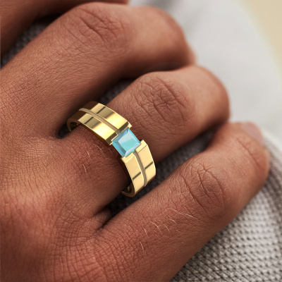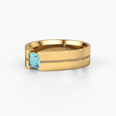 Are you looking for a modern gold men's ring that is slightly different? Then our flat gold blue topaz set Stefan men's ring is the perfect ring for you! This ring, as shown here, is made of gold but feel free to customize to your liking. Show them what you are all about with this gold blue topaz Stefan men's ring, a ring for ambitious men. Our goldsmiths passionately create your customized men's ring to your liking with the utmost care. The gold men's ring, as shown here, can be customized using our online tool. Feel free to ask our jewel designers for assistance if you want changes made which are unavailable in our online tool. We are happy to answer your questions.Our team of talented, passionate designers add new ring designs to our online collection daily. Our objective in doing so, is to be able to offer you a wide variety of jewels. Please feel free to request a quote if you have specific wishes for your ring. We guarantee to make you an offer you can't refuse.By using a combination of the latest modern techniques, combined with ancient crafting, we can make all our rings in our own studio. Each jewel is made to order. This is advantageous because we can offer you a price you won't find anywhere else.To make it easier for you, we offer a 30 day return policy. Check our terms and conditions.