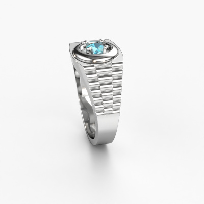 Everyone knows the design of this well-known watch brand. With two colours of platinum links, this solid platinum Edward men's ring, is perfectly suited for trendy, successful men. A man who wants to dress to impress with a striking men's ring with 4.7 mm blue topaz. Show them what you are made of!How do you like this exclusive platinum men's ring? Simply customize this Edward men's ring, using our online tool. Subsequently, your personal daring Edward men's ring will be made by hand by our goldsmiths. Precious metals and gemstones can be customized to your liking. Do you have specific preferences which are unavailable in our online tool? Please feel free to contact us. We will customize your personal exclusive men's ring to your liking.Our talented designers add new designs to our online collection daily. Together they create a diverse collection of the finest jewellery. If you prefer to make a ring according your own design, please feel free to request a quote. We will make you an amazing offer, based on quality and price.Because we design and deliver our own rings, we can offer you a ring at a price you won't find anywhere else. A ring is made to order, which helps prevent excess supplies, so we can make you a great price offer. We understand it feels risky, buying your ring online, but we will gladly assist in the designing process, taking your budget into consideration.To make it easier for you, we offer a 30 day return policy. Check our terms and conditions.