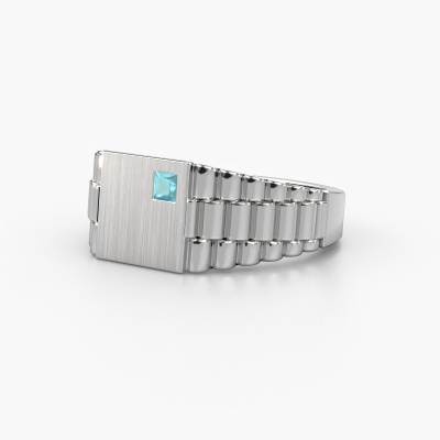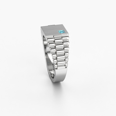 Everyone knows the design of this well-known watch brand. With two colours of platinum links, this solid platinum Pelle men's ring, is perfectly suited for trendy, successful men. A man who wants to dress to impress with a striking men's ring with 3 mm blue topaz. Show them what you are made of!The best part of this royal men's ring is that you can customize it to your own liking. Your style, your choice, your men's ring. On top of that, your luxury platinum men's ring will be made by hand with eco-friendly materials! Please feel free to easily customize the ring, using our online tool. Of course, you can always contact us. We will gladly help you compiling your luxury men's ring. Is there a design you like, but you would like to customize it with a gemstone we do not offer on our website, then please contact us. We're happy to tell you about the possibilities.Our team of talented, passionate designers add new ring designs to our online collection daily. Our objective in doing so, is to be able to offer you a wide variety of jewels. Please feel free to request a quote if you have specific wishes for your ring. We guarantee to make you an offer you can't refuse.After receiving your order, our goldsmiths will start the creative process of making your Pelle ring. We don't keep stock. This is advantageous because these costs will not be passed on to you. Therefore, we can offer jewellery at exceptionally low prices.To make it easier for you, we offer a 30 day return policy. Check our terms and conditions.