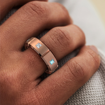Dress to impress with this rectangular Steve light men's ring, because with the right ring you make a strong personal statement. This Steve light royal men's ring is shown in 14 Carat rose gold. If this doesn't suit your style, feel free to customize the precious metal to your liking. After all, you want a men's ring that matches your style. A ring that truly suits you. One saying: This is who I am!Our goldsmiths passionately create your customized men's ring to your liking with the utmost care. The rose gold men's ring, as shown here, can be customized using our online tool. Feel free to ask our jewel designers for assistance if you want changes made which are unavailable in our online tool. We are happy to answer your questions.Our team of talented, passionate designers add new ring designs to our online collection daily. Our objective in doing so, is to be able to offer you a wide variety of jewels. Please feel free to request a quote if you have specific wishes for your ring. We guarantee to make you an offer you can't refuse.After receiving your order, our goldsmiths will start the creative process of making your Steve light ring. We don't keep stock. This is advantageous because these costs will not be passed on to you. Therefore, we can offer jewellery at exceptionally low prices.To make it easier for you, we offer a 30 day return policy. Check our terms and conditions.