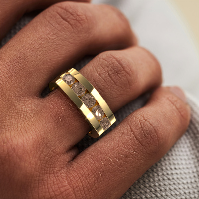 Are you looking for a exclusive gold men's ring that is slightly different? Then our heavy gold brown diamond set Richard men's ring is the perfect ring for you! This ring, as shown here, is made of gold but feel free to customize to your liking. Show them what you are all about with this gold brown diamonds Richard men's ring, a ring for ambitious men. How do you like this exclusive gold men's ring? Simply customize this Richard men's ring, using our online tool. Subsequently, your personal luxury Richard men's ring will be made by hand by our goldsmiths. Precious metals and gemstones can be customized to your liking. Do you have specific preferences which are unavailable in our online tool? Please feel free to contact us. We will customize your personal exclusive men's ring to your liking.Our team of talented, passionate designers add new ring designs to our online collection daily. Our objective in doing so, is to be able to offer you a wide variety of jewels. Please feel free to request a quote if you have specific wishes for your ring. We guarantee to make you an offer you can't refuse.After receiving your order, our goldsmiths will start the creative process of making your Richard ring. We don't keep stock. This is advantageous because these costs will not be passed on to you. Therefore, we can offer jewellery at exceptionally low prices.To make it easier for you, we offer a 30 day return policy. Check our terms and conditions.